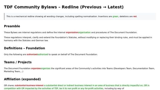 I’ve put together a mechanical red-line diff between the initial and latest versions of the Community Bylaws, in case it helps others quickly see what changed: