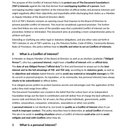 I’d like to share with you the draft of what could become version 2 of our Conflict of Interest Policy after receiving feedback from our trustees, the Board of Directors and our legal counsels.