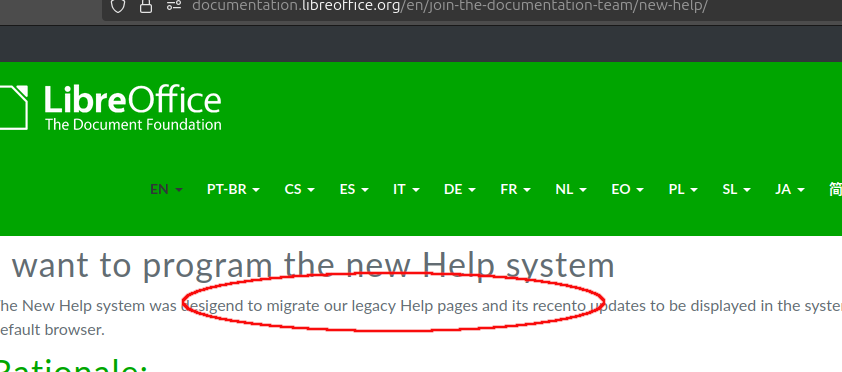- Website documentation.libreoffice.org is old and should be redirected to bookshelf.LO (Ilmari)