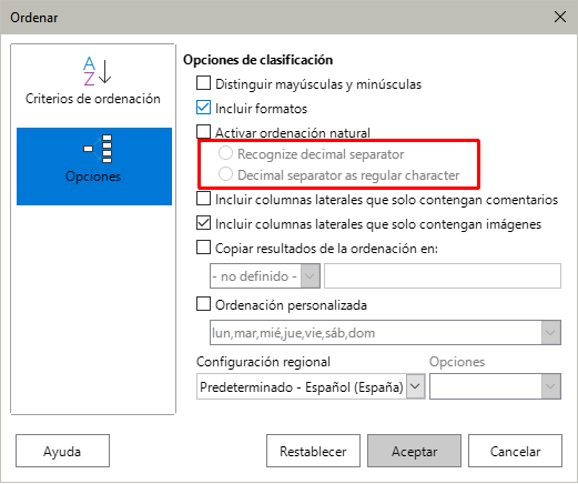 Datos > Ordenar