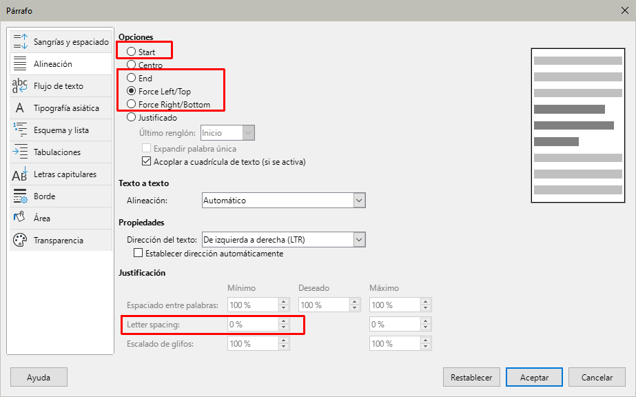 Página Flujo de texto